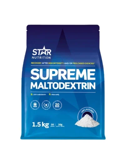 Supreme Maltodextrin är ett lättlösligt kolhydratpulver som ger snabb energi vid träning och återhämtning.
